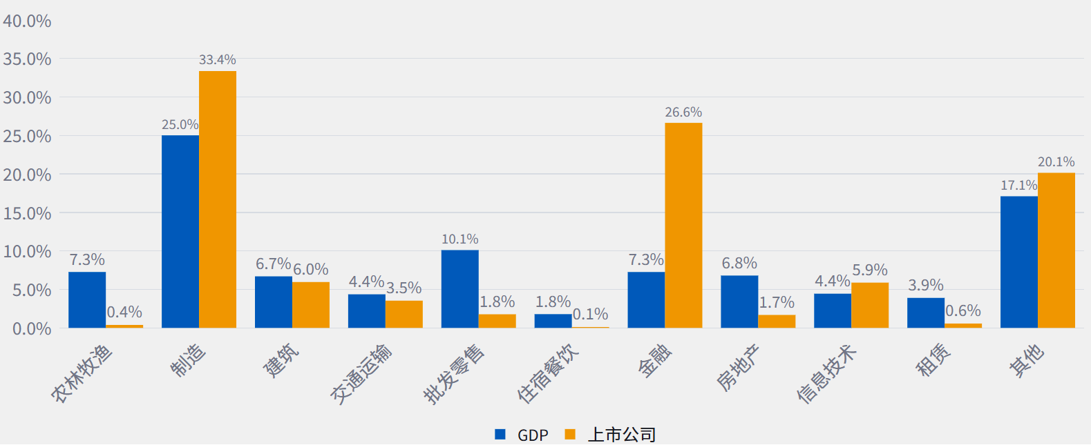 图6 国内生产总值(名义GDP)及上市公司生产总值的行业构成