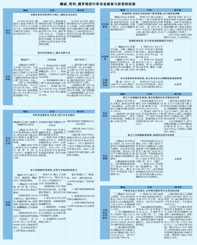 20世纪80年代以来,挪威、智利、俄罗斯等经济体采取了利用优势资源弥补资金缺口的方式,以应对养老金不足,有一定借鉴意义。